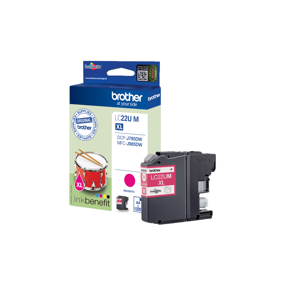Quando è il momento di ordinare la ricarica d’inchiostro, puoi contare sulla cartuccia d’inchiostro magenta Brother LC22UM con la certezza che la stampante continuerà a funzionare perfettamente e che le stampe saranno nitidissime.